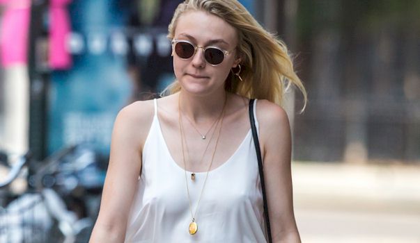 Great candids of a braless Dakota Fanning out and about in Soho, New York! Terrific diamond cutters and love the boob outline in that loose top!