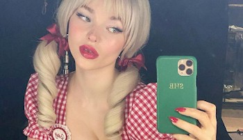 Cleavage selfie of Dove Cameron wearing her cute Schmigadoon (TV show) costume! Kinky!