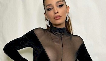 Greek singer Eleni Foureira showing plenty of cleavage in a black dress while attending an event called MadWalk 2021!
