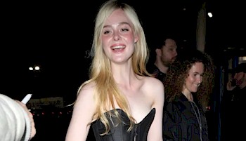 Elle Fanning teasing cleavage by wearing a strapless corset-style top at a Paris Hilton concert in Hollywood!