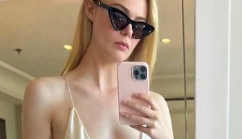 Elle Fanning sharing a braless selfie of herself wearing a nice dress!