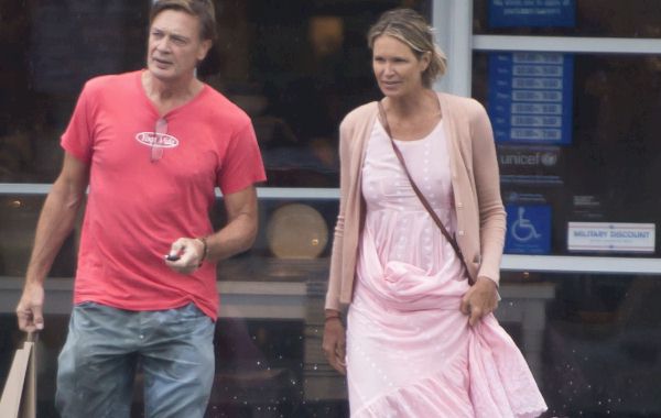 Candids of Elle MacPherson braless in a pink dress while out shopping in Miami! She’s like a sexy grandma now.