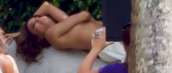 Eva Longoria posing topless (but covering herself with her arms) during a photo shoot in Miami! What I wouldn’t give to be on that set because you know she slipped some nipple to the crew..