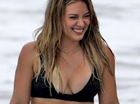 Fresh candids of Hilary Duff wearing a black bikini at the beach!