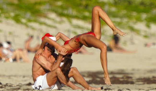 Behind the scenes candids of model Izabel Goulart posing in a skimpy bikini for a photo shoot at the beach in St. Barts!