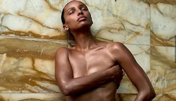 A topless Jasmine Tookes covering her boobs with her arms for a new sexy photo shoot!