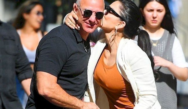 Candids of Jeff Bezos and his girlfriend Lauren Sánchez leaving luxury clothing store Brunello Cucinelli in NYC and Lauren showing nipple pokies in a tight dress!