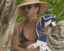 Candids of Jennifer Aniston wearing a black bikini at the beach in Tulum, Mexico!