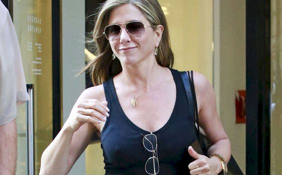 Jennifer Aniston Braless (Duh!) in a Leather Dress!
