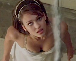 Clip of an 18-year old Jessica Alba showing cleavage as a sexy angel in the movie Idle Hands!