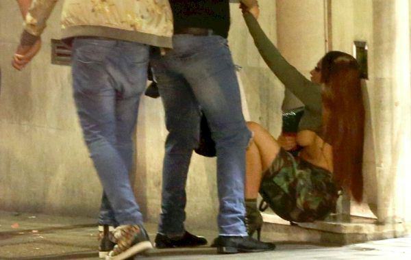 Candids of a drunk Jesy Nelson flashing boob while falling down earlier this summer! She’s a member of pop group Little Mix.
