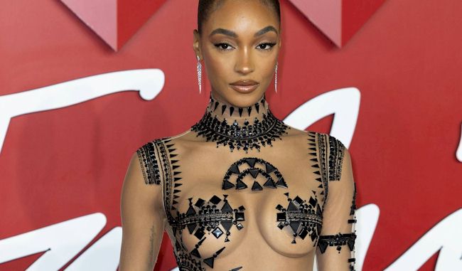 Model Jourdan Dunn wearing a semi-sheer dress while attending the 2022 Fashion Awards in London! Can see quite a bit of areola!