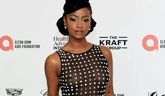 Justine Skye showing nipples in a see through dress as she’s attending Elton John’s 32nd Annual Academy Awards Viewing Party in West Hollywood!