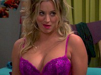 Caps of Kaley Cuoco looking sexy in a purple teddy on Big Bang Theory!