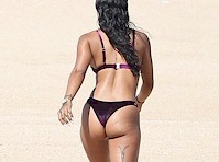 Candids of Karrueche Tran looking bootylicious in a purple bikini at a beach in Cabo!