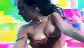 Outtakes of Katy Perry showing nipples in a see through bikini top to promote her new single Woman’s World! View the pictures + clips