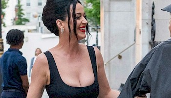 Katy Perry showing nipples by going braless in a tight bodysuit while attending Lauren Sanchez’s bachelorette party in Paris! View the pictures + clip