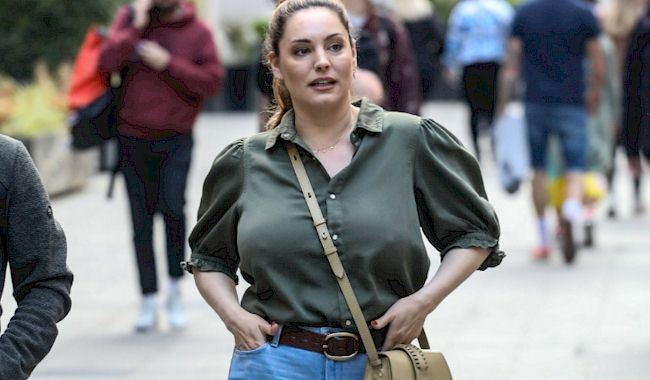 Candids of Kelly Brook wearing a bra but still showing nipple pokies in a green top while out and about in London! Her boobs are so mighty. View the pictures