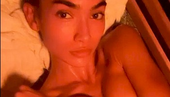 Selfie of model Kelly Gale posing topless in an arm bra!