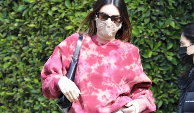 Candids of Kendall Jenner leaving a private gym in LA and wearing purple leggings with a glorious camel toe on display!