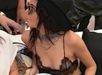 Clip of Kendall Jenner wearing a sheer bra at Coachella! Can definitely see her nipple piercing.