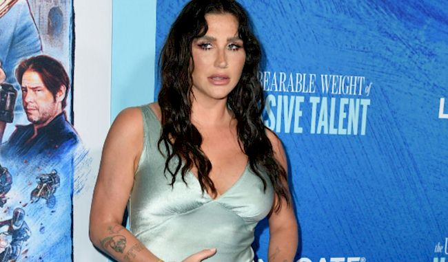 Here’s Kesha showing nipple pokies in a silk dress while attending the premiere of The Unbearable Weight of Massive Talent in Los Angeles!