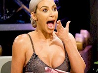 Kim Kardashian wore a low cut and sexy dress while playing the guts game on James Corden! She also made a penis joke.