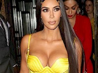 Kim Kardashian got Cleavage in a Yellow Dress!