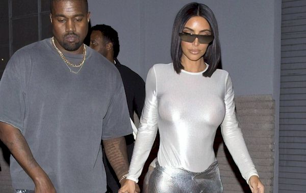 Candids of a braless Kim Kardashian wearing a tight silver top while out and about in Los Angeles! Slight see through!