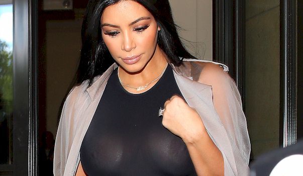 YES! Here are candids of a braless Kim Kardashian in a see through black dress while leaving her hotel in London! Big boobies and big areolas!!
