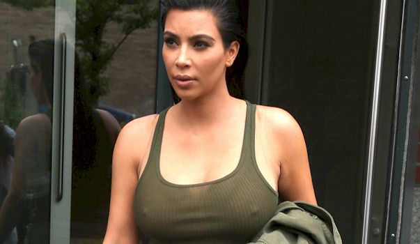 Candids of Kim Kardashian and her mega pokies in a tight green dress while out in NYC!! Too bad she’s wearing or bra or these would’ve been epic.