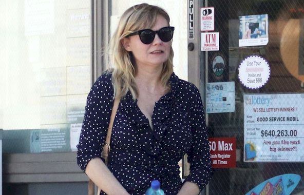 Pics of the wind taking hold of Kirsten Dunst’s dress at a gas station in LA and giving us a view of her black panties!