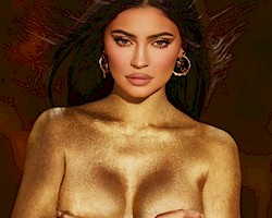Sexy photos of Kylie Jenner holding on to her tits and “wearing” golden body paint!