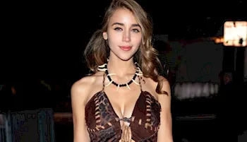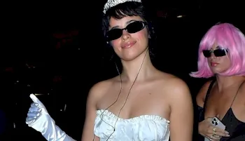 Camila Cabello showing plenty of leg and a hint of nipple in a sexy lace top but keeping her face hidden in a ski mask as she attends the Vetements show during Paris Fashion Week!