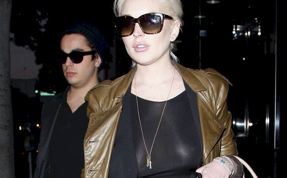 Lindsay Lohan was spotted wearing a see through top and NO BRA while shopping at 14 Karat in LA! I wonder if Playboy is kicking themselves every time this gal shows her boobs for free?