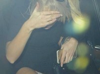Candid shot of model Lottie Moss stepping out of a car for a classic panty upskirt view!