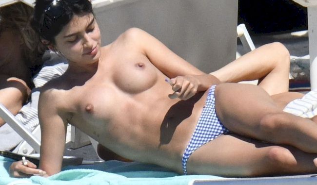 Candids of fashion model and the daughter of Spanish actress Blanca Romero, Lucia Rivera Romero caught topless at the beach in Sardinia!