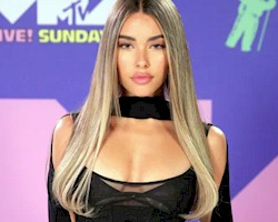 Madison Beer was sexy and showed cleavage in a black dress on the “red carpet” for the