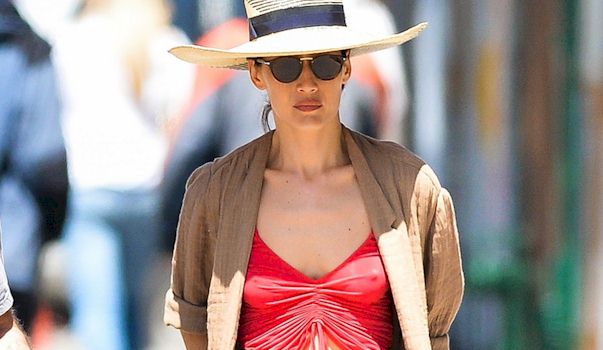 Candids of a braless Maggie Q and her pokies in a red top while out and about in NYC! I like Maggie Q but she needs to gain some weight. Oh, and never wear that hat ever again.
