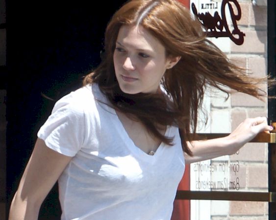 Lovely Mandy Moore pokies as she leaves a cafe in Beverly Hills. That top is slightly sheer too but she is wearing a black bra.