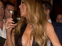 Candids of a drunk looking Mariah Carey wearing a cleavy dress and showing off her pasties while leaving a night club in Paris!