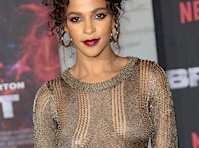 Megalyn Echikunwoke wore a very sexy dress to the red carpet premiere of Bright! Would’ve been an awesome see through if she hadn’t wore pasties!