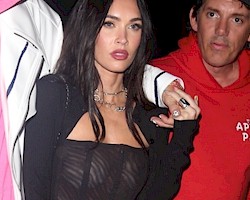 Candids of Megan Fox wearing a sheer top while leaving Six Flags with Machine Gun Kelly! No nips but a nice view of her cleavage!