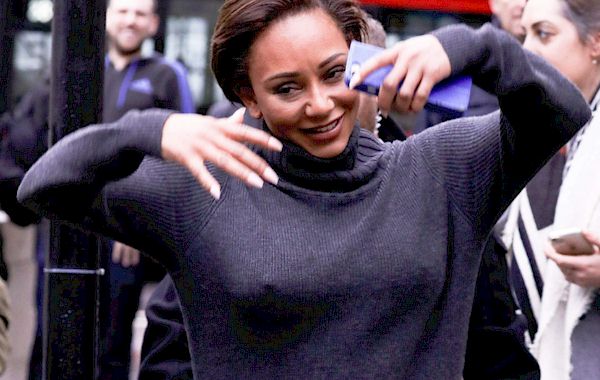 Candids of Melanie Brown looking like she’s completely nude under a sweater dress outside BBC Radio where she was promoting her book in London!