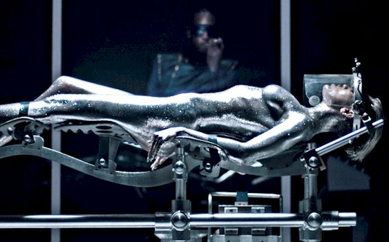 These are behind the scenes shots of Miley Cyrus in silver body paint for her Real and True music video! She is clearly wearing pasties but still.. that shot of her laying down is YUM!