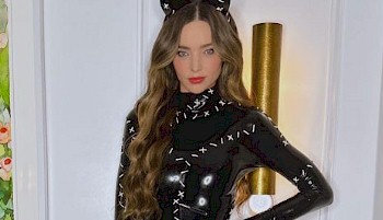Miranda Kerr showing off her amazing body by dressing up as the Michelle Pfeiffer version of Cat Woman!