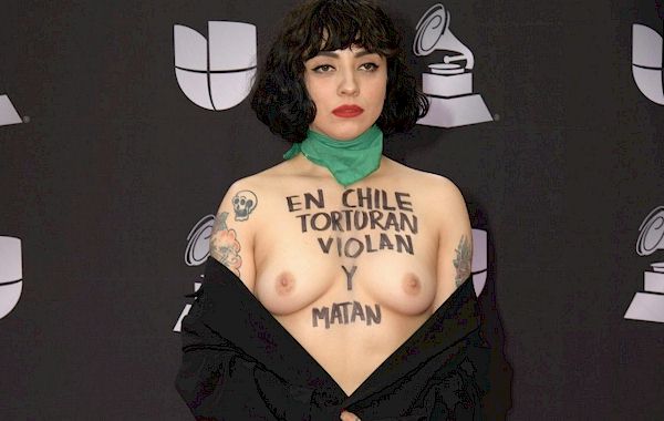 Chilean singer Mon Laferte flashed her boobs with some sort of message on the red carpet for the 20th annual Latin Grammy Awards in Las Vegas!