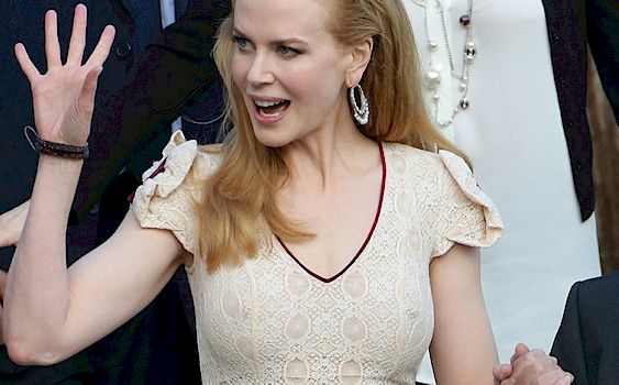 Here’s Nicole Kidman arriving on French TV show Le Grand Journal in Cannes! Looks like she forgot to pack her bras..