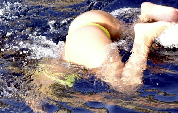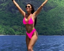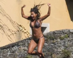 Candids of Nicole Scherzinger wearing a bikini while jumping off a bridge in Italy!