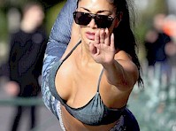 Candids of Nicole Scherzinger showing terrific cleavage in a sports bra while on her way to the gym in Hollywood!